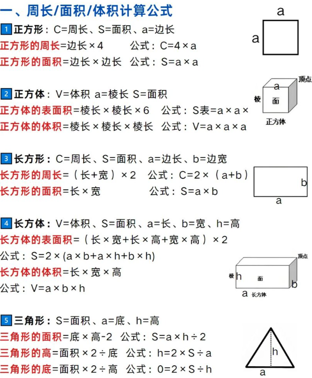 小学数学基础打得好,初中升学大受益!1-6年级数学公式大全全新整理,图形与几何公式 、数量关系计算公式 、经典应用题公式 、常用数表合集...