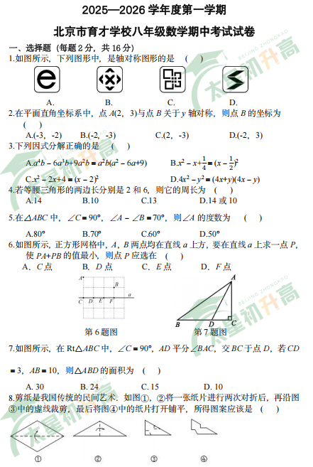 2025-2026学年第一学期北京育才学校初二数学期中试卷及答案什么时候出?考哪些内容?如何下载?