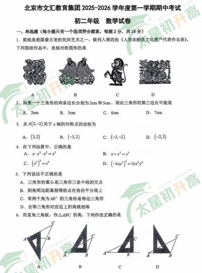 2025-2026学年(上)东城区文汇中学初二数学期中试卷已出!文末可直接下载试卷!