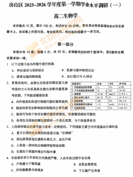2025-2026学年第一学期房山高二生物期中试卷及答案什么时候出?考哪些内容?如何下载?