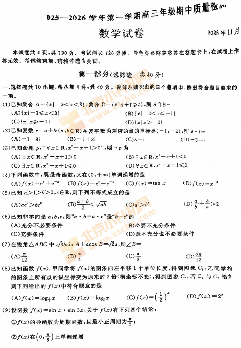 下载2025-2026学年(上)北京各区高中高一、高二、高三期中试卷汇总