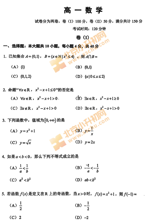 2025-2026学年第一学期北京四中高一数学期中试卷及答案什么时候出?考哪些内容?如何下载?