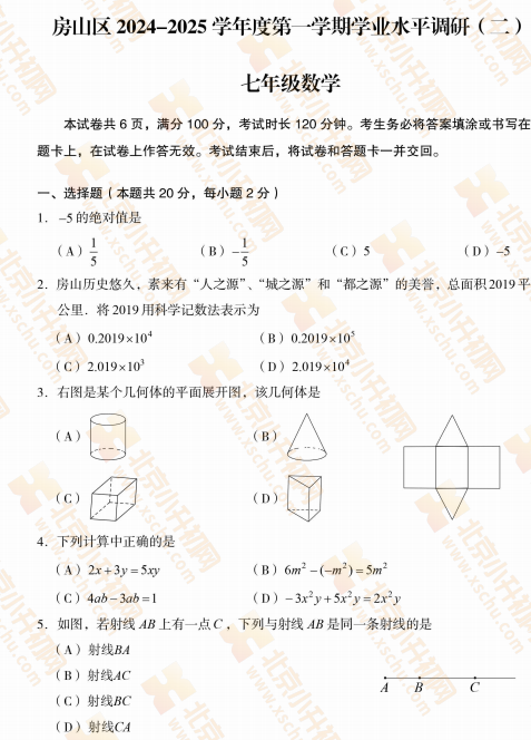 房山区2025-2026学年第一学期初一期末数学试卷及答案什么时候出?考哪些内容?如何下载?