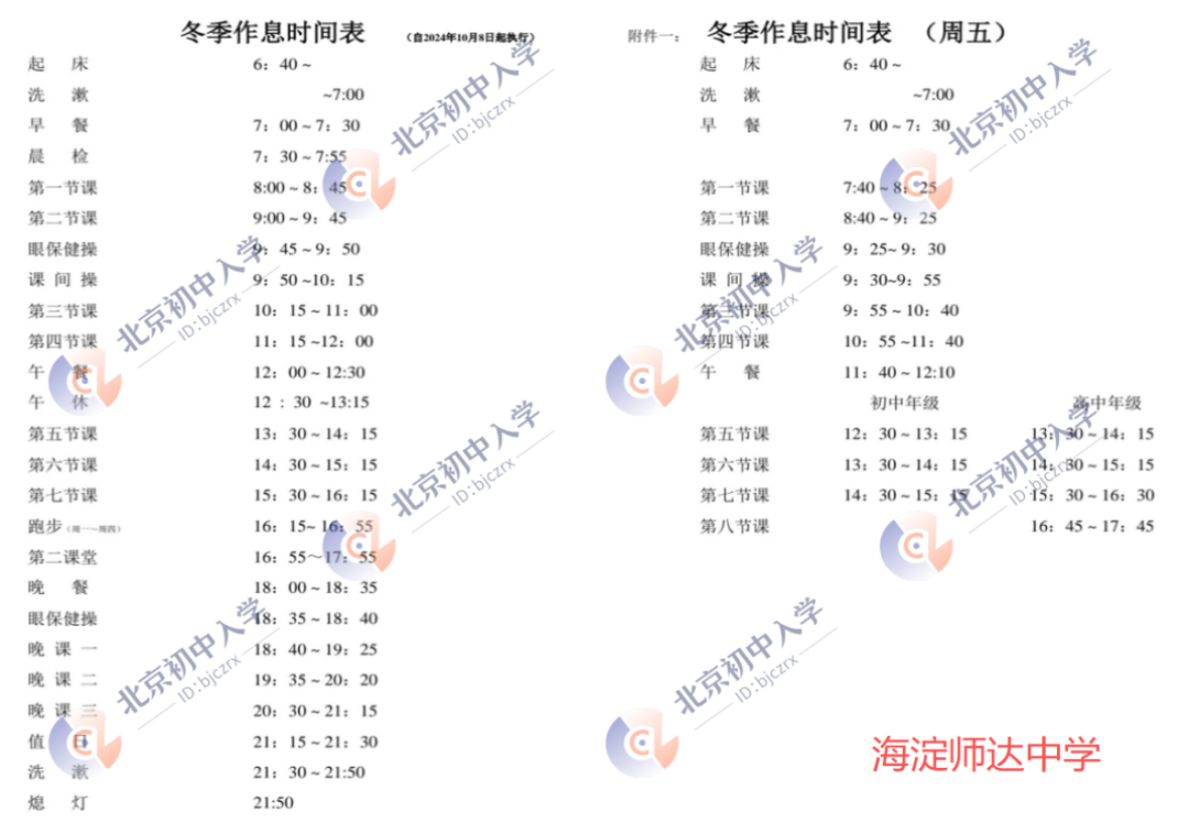 北京小升初网收集整理:2025-2026学年第一学期北京海淀师达中学作息时间、课表,供小学家长参考!