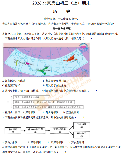 房山区2025-2026学年第一学期初三期末历史试卷及答案什么时候出?考哪些内容?如何下载?