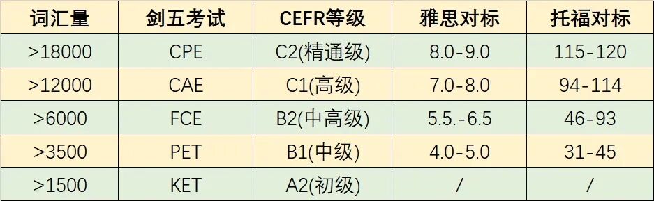 剑桥五级考试,可以衔接雅思、托福等出国标准化考试,帮助学生为雅思、托福考试做好预备和基础铺垫。对比如下: