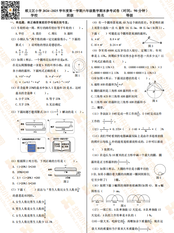 2025-2026学年(上)顺义区小学六年级数学期末试题预计在2026年1月出炉!家长可先下载去年期末试题,练习提升!新试卷公布后将更新在本页面,建议(Ctrl+D)收藏本页面!
