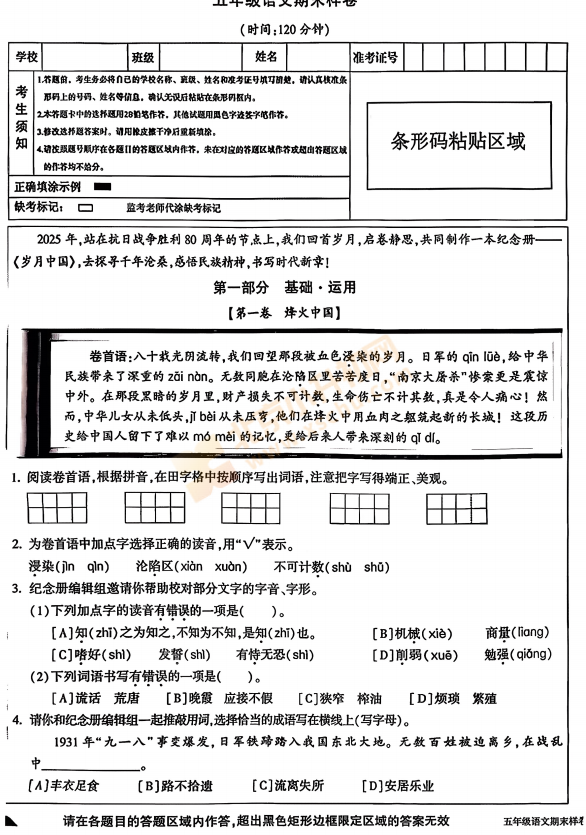 2025-2026学年(上)顺义区小学五年级语文期末试题已出炉!下载完整版试卷请点击文末pdf文件!或点击下方图片↓打包下载2026年北京各区小学期末试卷!