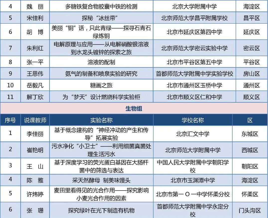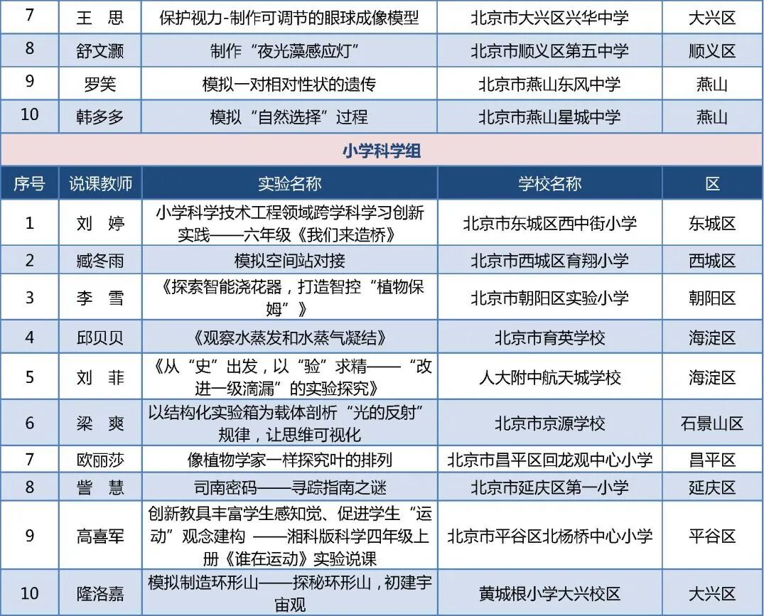 2025年北京市中小学实验教学能力展示活动优秀案例名单