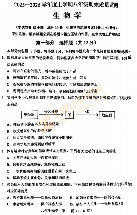 2025-2026学年(上)顺义初二期末生物试卷已出炉!下载完整版试卷请点击文末pdf文件!或点击下方图片↓打包下载2026年北京各区初中期末试卷!
