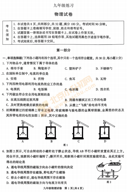 2025-2026学年第一学期顺义初三期末物理试卷及答案什么时候出?考哪些内容?如何下载?