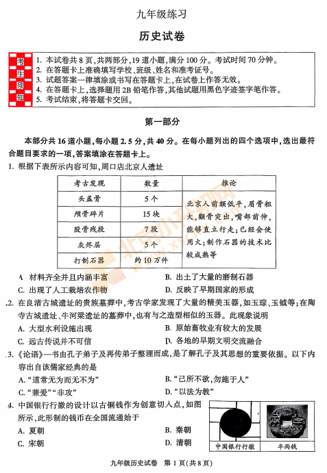 2025-2026学年(上)顺义初三期末历史试卷已出炉!下载完整版试卷请点击文末pdf文件!或点击下方图片↓打包下载2026年北京各区初中期末试卷!