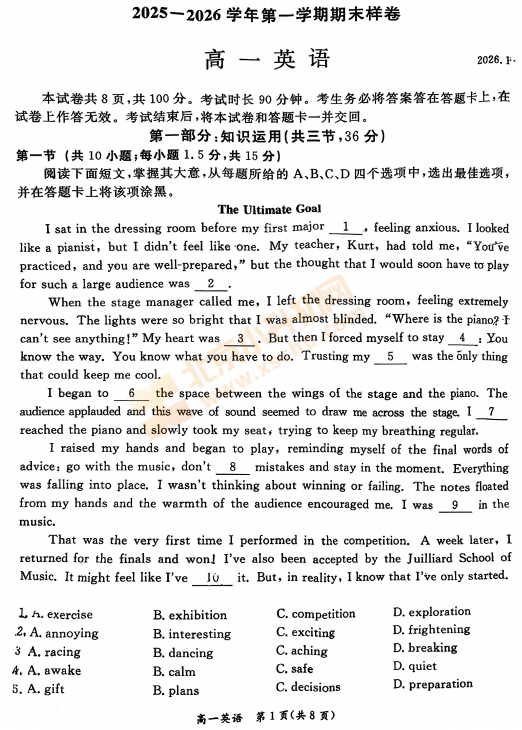 2025-2026学年第一学期东城高一期末英语试卷及答案什么时候出?考哪些内容?如何下载?