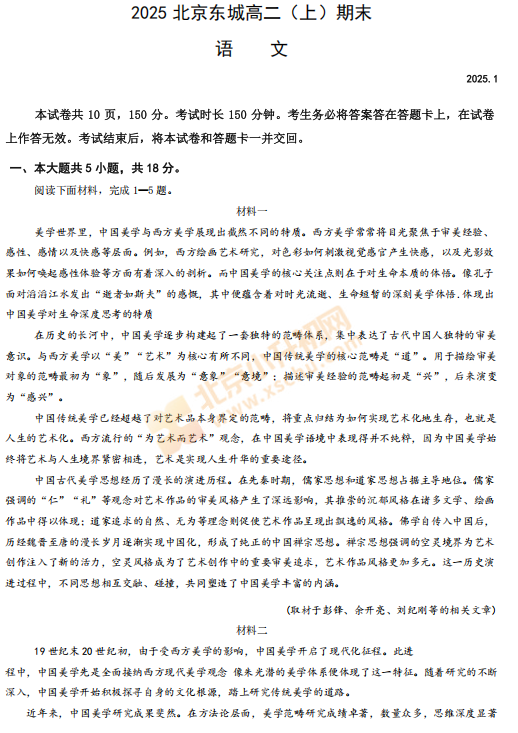 2025-2026学年第一学期东城高二期末语文试卷及答案什么时候出?考哪些内容?如何下载?
