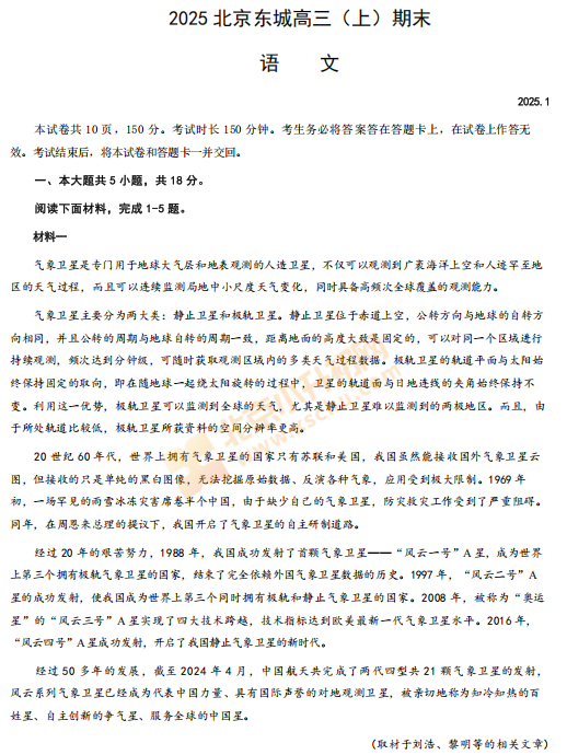2025-2026学年(上)东城高三期末语文试卷及答案预计在2026年1月出炉!家长可先下载去年期末试题,练习提升!新试卷公布后将更新在本页面,建议(Ctrl+D)收藏本页面!