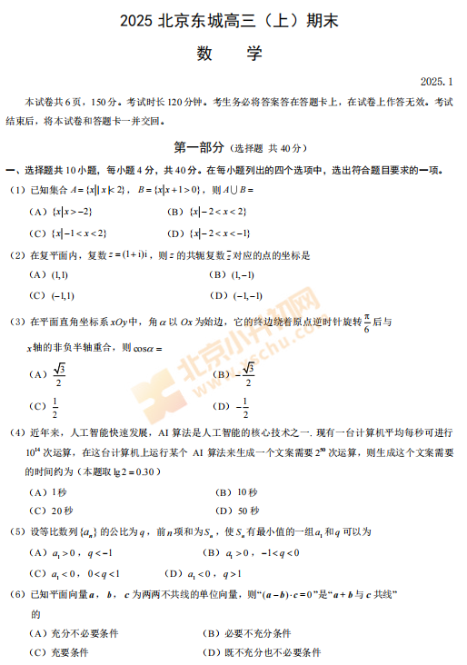 2025-2026学年(上)东城高三期末数学试卷及答案预计在2026年1月出炉!家长可先下载去年期末试题,练习提升!新试卷公布后将更新在本页面,建议(Ctrl+D)收藏本页面!