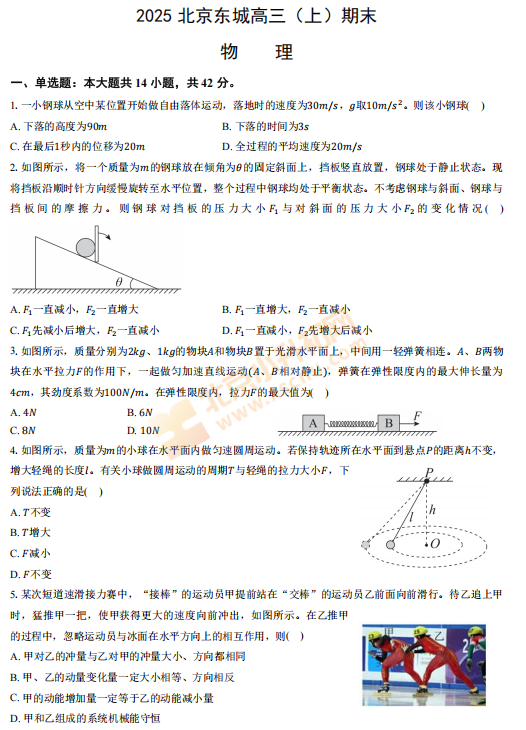 2025-2026学年第一学期东城高三期末物理试卷及答案什么时候出?考哪些内容?如何下载?
