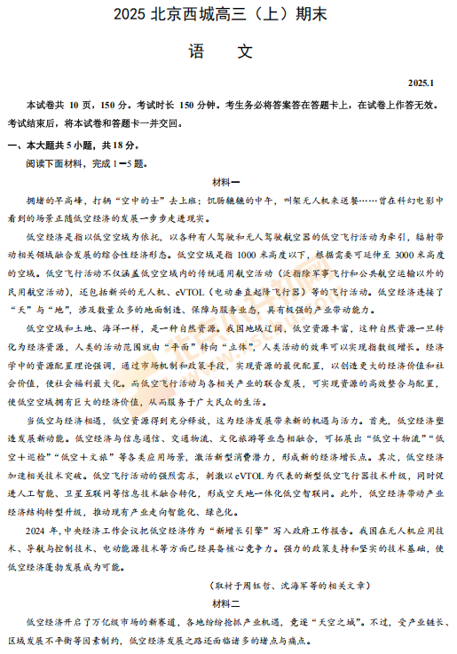 2025-2026学年第一学期西城高三期末语文试卷及答案什么时候出?考哪些内容?如何下载?