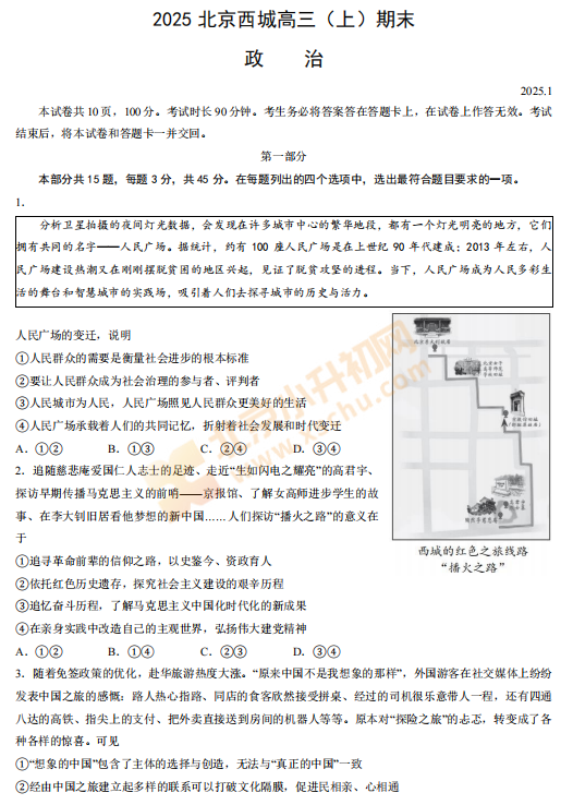 2025-2026学年(上)西城高三期末政治试卷及答案预计在2026年1月出炉!家长可先下载去年期末试题,练习提升!新试卷公布后将更新在本页面,建议(Ctrl+D)收藏本页面!