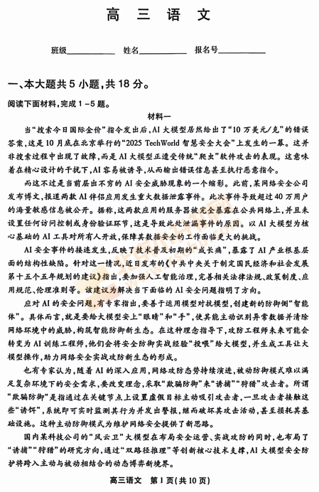 2025-2026学年第一学期丰台高三期末语文试卷及答案什么时候出?考哪些内容?如何下载?