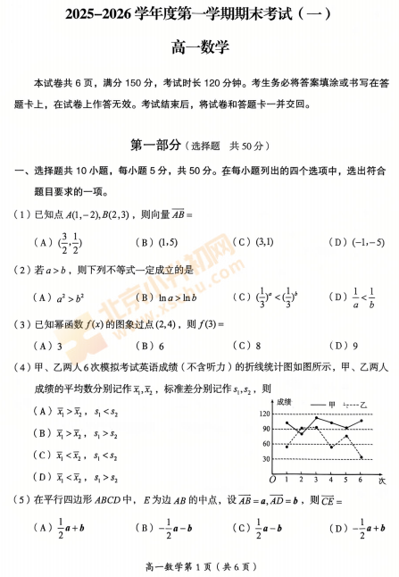 2025-2026学年第一学期房山高一期末数学试卷及答案什么时候出?考哪些内容?如何下载?