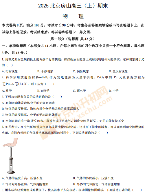 2025-2026学年第一学期房山高三期末物理试卷及答案什么时候出?考哪些内容?如何下载?