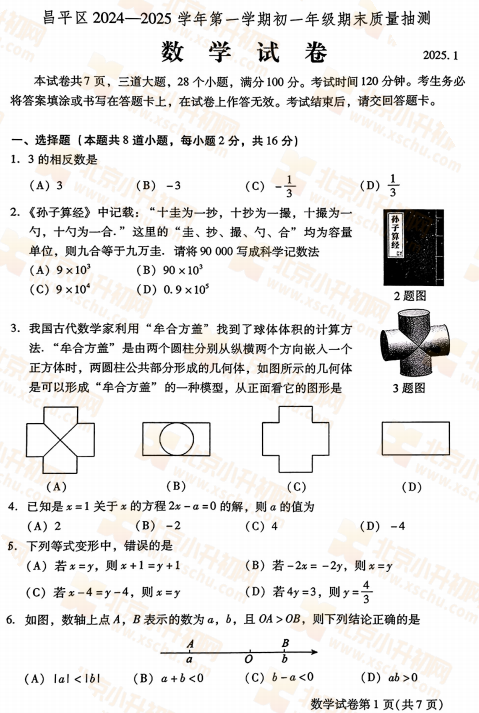 2025-2026学年第一学期昌平初一期末数学试卷及答案什么时候出?考哪些内容?如何下载?