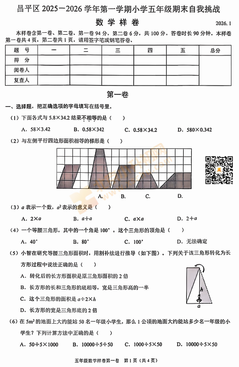 2025-2026学年(上)昌平区小学五年级数学期末试题已出炉!下载完整版试卷请点击文末pdf文件!或点击下方图片↓打包下载2026年北京各区小学期末试卷!