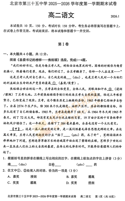 2025-2026学年(上)北京三十五中学高二期末语文试卷已出炉!下载完整版试卷请点击文末pdf文件!或点击下方图片↓打包下载2026年北京各区高中期末试卷!