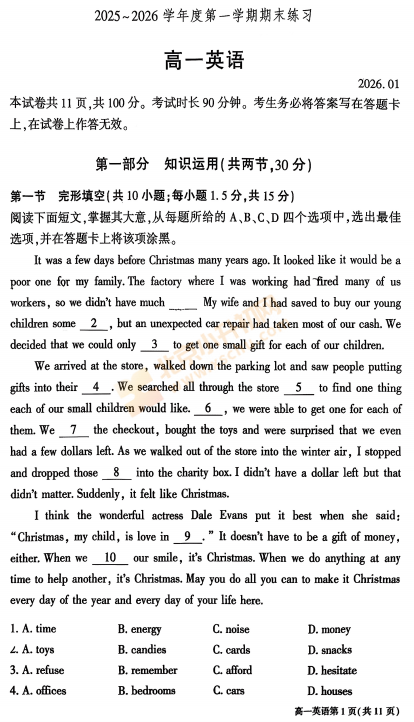 2025-2026学年(上)大兴高一期末英语试卷已出炉!下载完整版试卷请点击文末pdf文件!或点击下方图片↓打包下载2026年北京各区高中期末试卷!