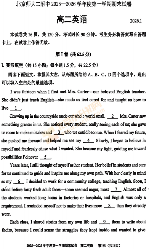 2025-2026学年(上)北京师大二附中高二期末英语试卷已出炉!下载完整版试卷请点击文末pdf文件!或点击下方图片↓打包下载2026年北京各区高中期末试卷!