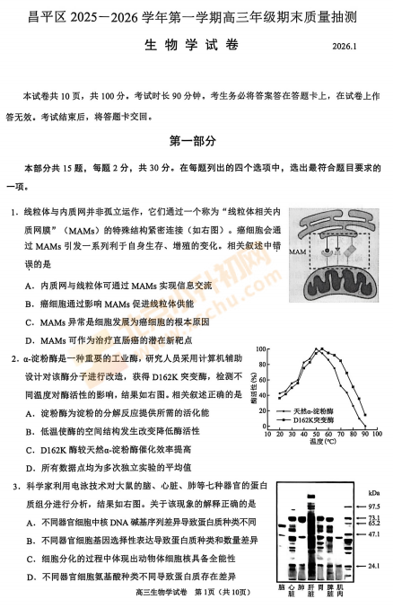 2025-2026学年(上)昌平高三期末生物试卷已出炉!下载完整版试卷请点击文末pdf文件!或点击下方图片↓打包下载2026年北京各区高中期末试卷!