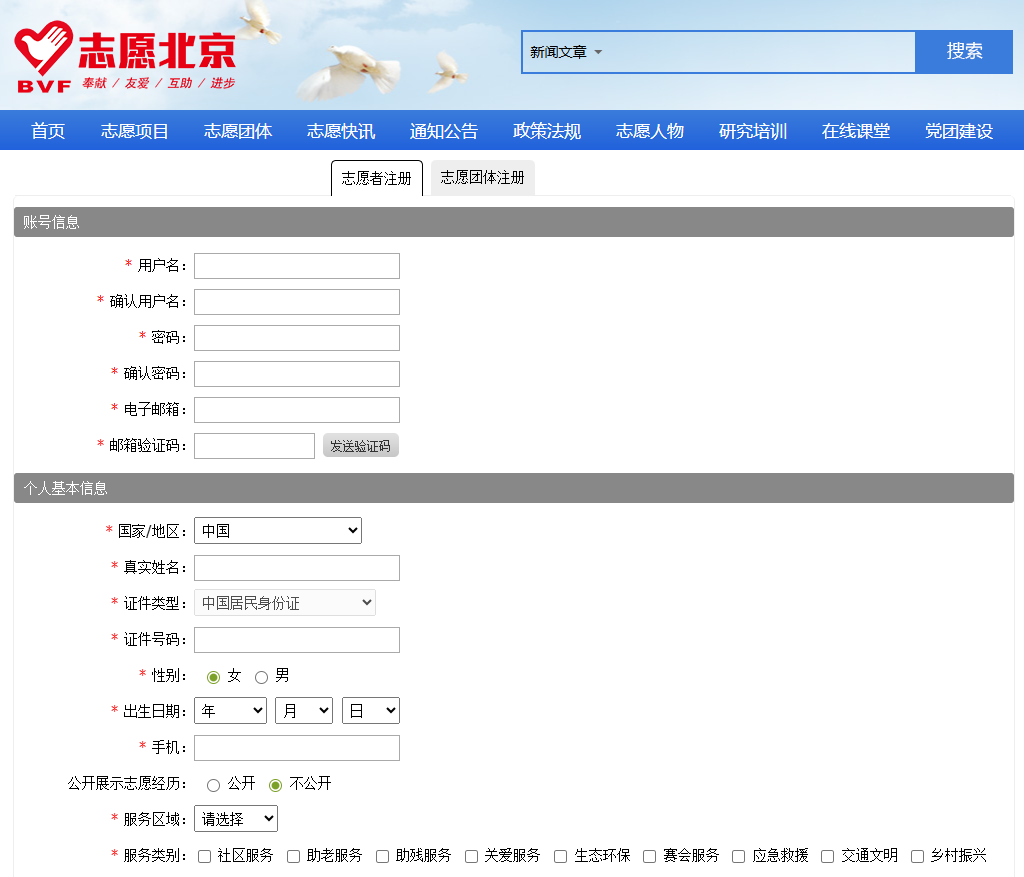 北京中小学新志愿者注册流程(以官网为例)