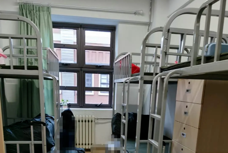 宿舍6人一间(上下铺),无独立卫浴;楼道有公共洗漱、卫生间、独立淋浴间(带帘)。