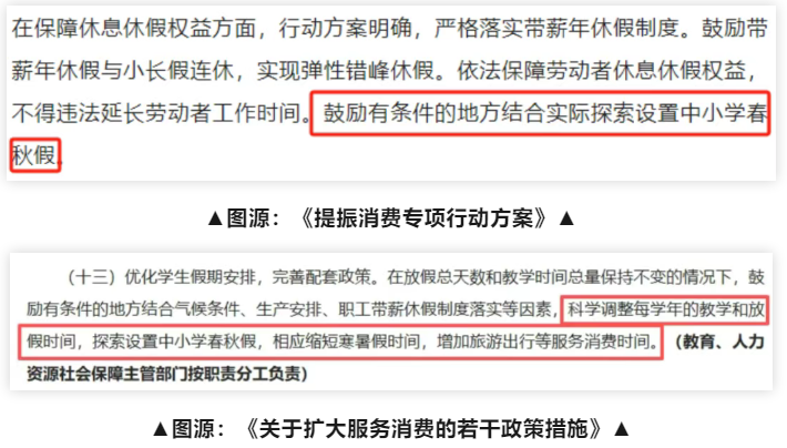 春秋假是指在保证全年总教学时长不变的前提下,FormatStrongID_4。也就是说,保证全年总教学时长,施行春秋假地区,一定程度上会对寒暑假造成影响。它通常与“五一”“国庆”等法定节假日衔接,形成更长的连续休息时间,以便于学生放松、参与实践活动或家庭出行。