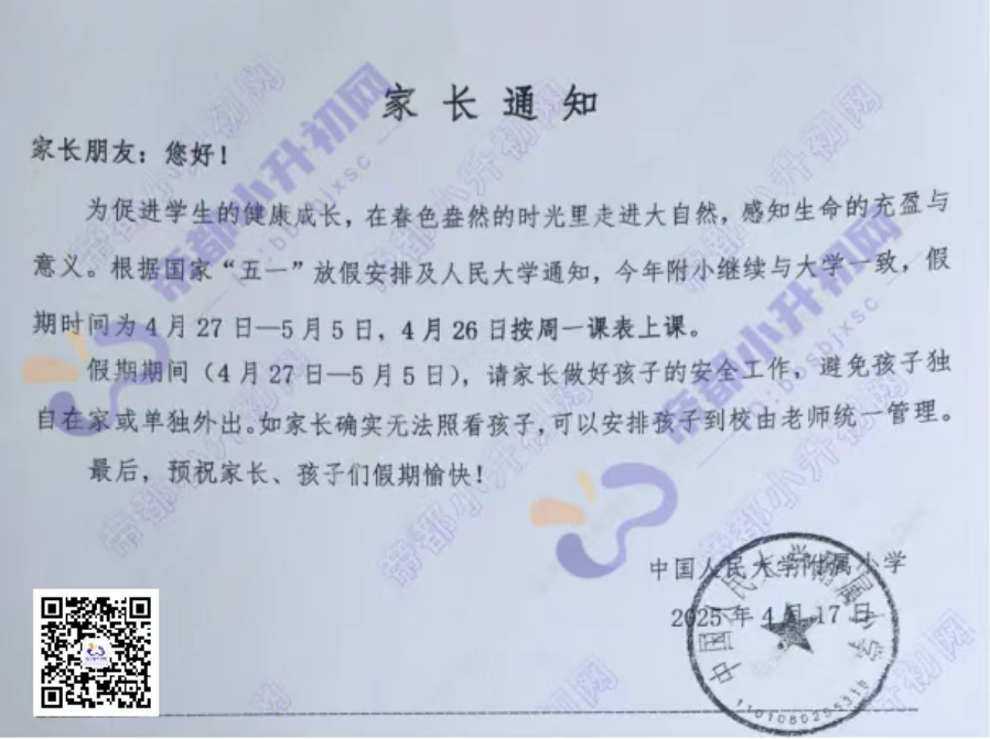 北京市人大附小办公室发布的放假安排中提到“春假”↓