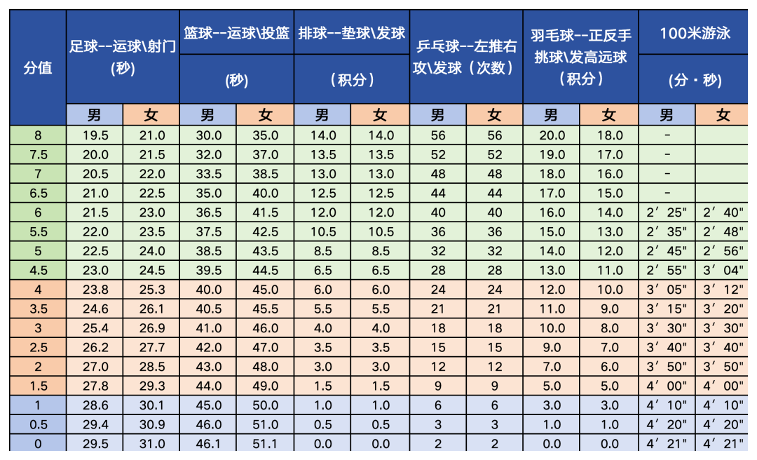 2026年北京市初中学考体育现场考试将于4月至5月举行,考试共分为4类22项。目前正是备考关键期,各项目评分标准如下,方便考生对照练习、精准备考。