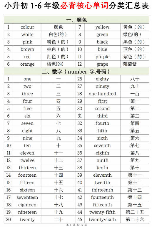 小升初英语单词必背(部分展示)