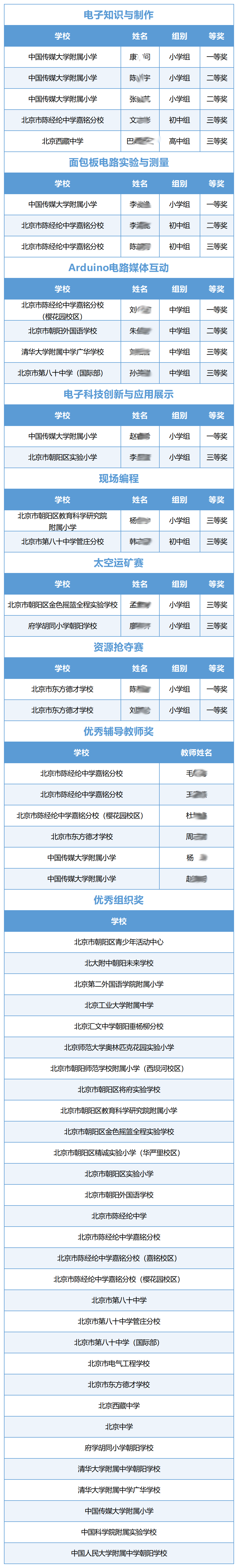 北京市教委公布了2025年北京市中小学生电子与信息创意实践活动获奖名单。朝阳区上榜师生如下!