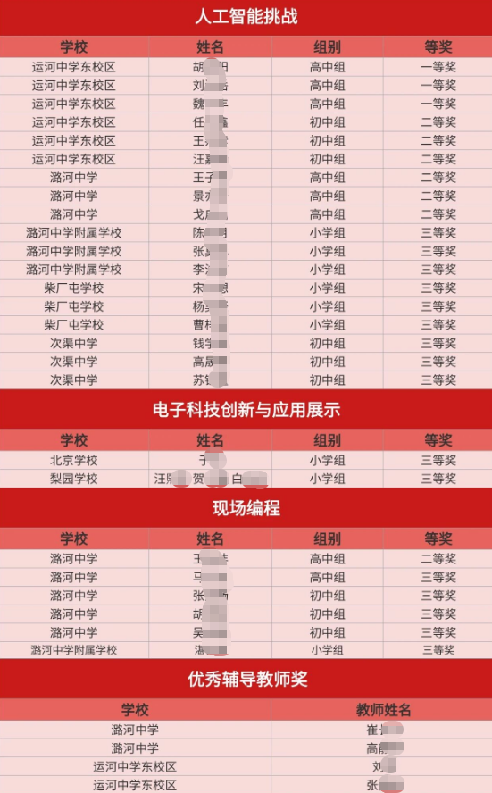 近日,北京市教委官网公布了2025年北京市中小学生电子与信息创意实践活动获奖名单,通州区上榜师生有哪些?详情如下:
