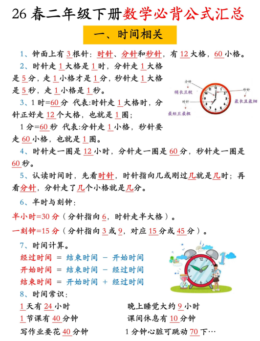 二年级下册数学公式(文末下载PDF文件)