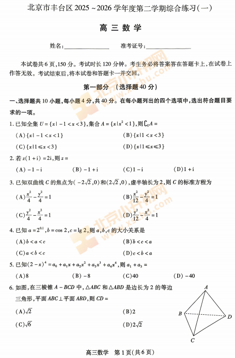 2026丰台高三一模数学试卷已出炉!北京小升初网汇总整理2026年北京各区高三一模试卷,点击图片打包下载,或文末下载PDF文件!