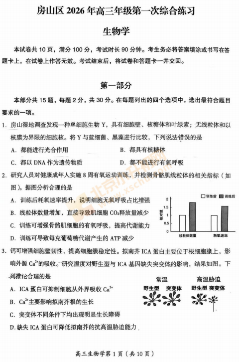 2026房山高三一模生物试卷已出!考哪些内容?满分多少?有多少题?2026、2027、2028房山高三考生下载复习!
