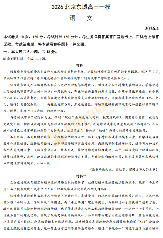 2026东城高三一模语文试卷已出炉!北京小升初网汇总整理2026年北京各区高三一模试卷,点击图片打包下载,或文末下载PDF文件!