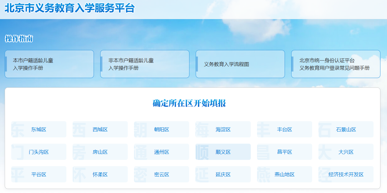 2026年北京小升初信息采集采用分区办理原则,各区均设有专属的小升初入学服务平台,家长需根据孩子小升初升学所在城区,进入对应平台完成信息采集,切勿跨区操作。