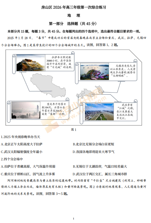 2026房山高三一模地理试卷已出!考哪些内容?满分多少?有多少题?2026、2027、2028房山高三考生下载复习!