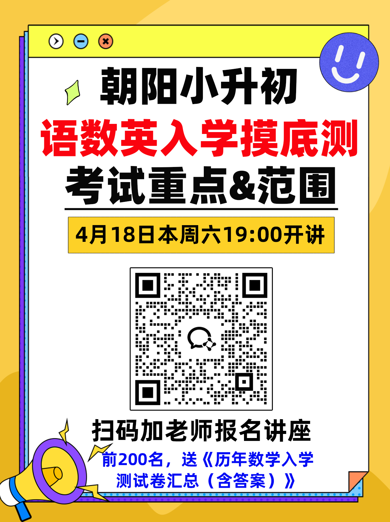 ⏰4月18日本周六19:00,在线直播,集中给朝阳5~6年级家长讲解,初中入学测试&志愿填报攻略!图片扫码👇加老师直接报名!