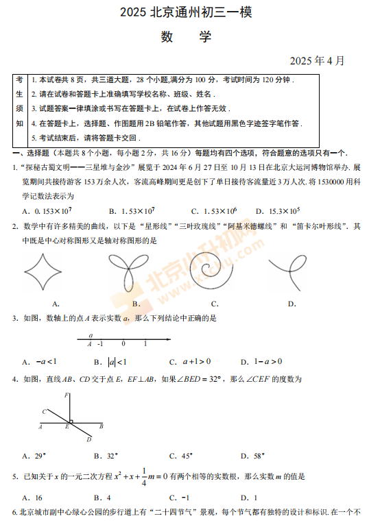 2026通州初三一模考试预计在4月中下旬进行,北京各区初三考生可下载2025年通州初三一模数学试卷复习,2026最新试卷发布后将更新在本页面,建议收藏!