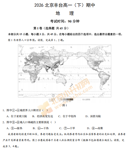 2025-2026学年(下)丰台高一期中地理试卷下载!考试分值、题型有哪些?