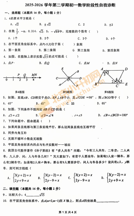 2025-2026学年(下)北京丰台二中初一期中数学试卷下载!考试分值、题型有哪些?